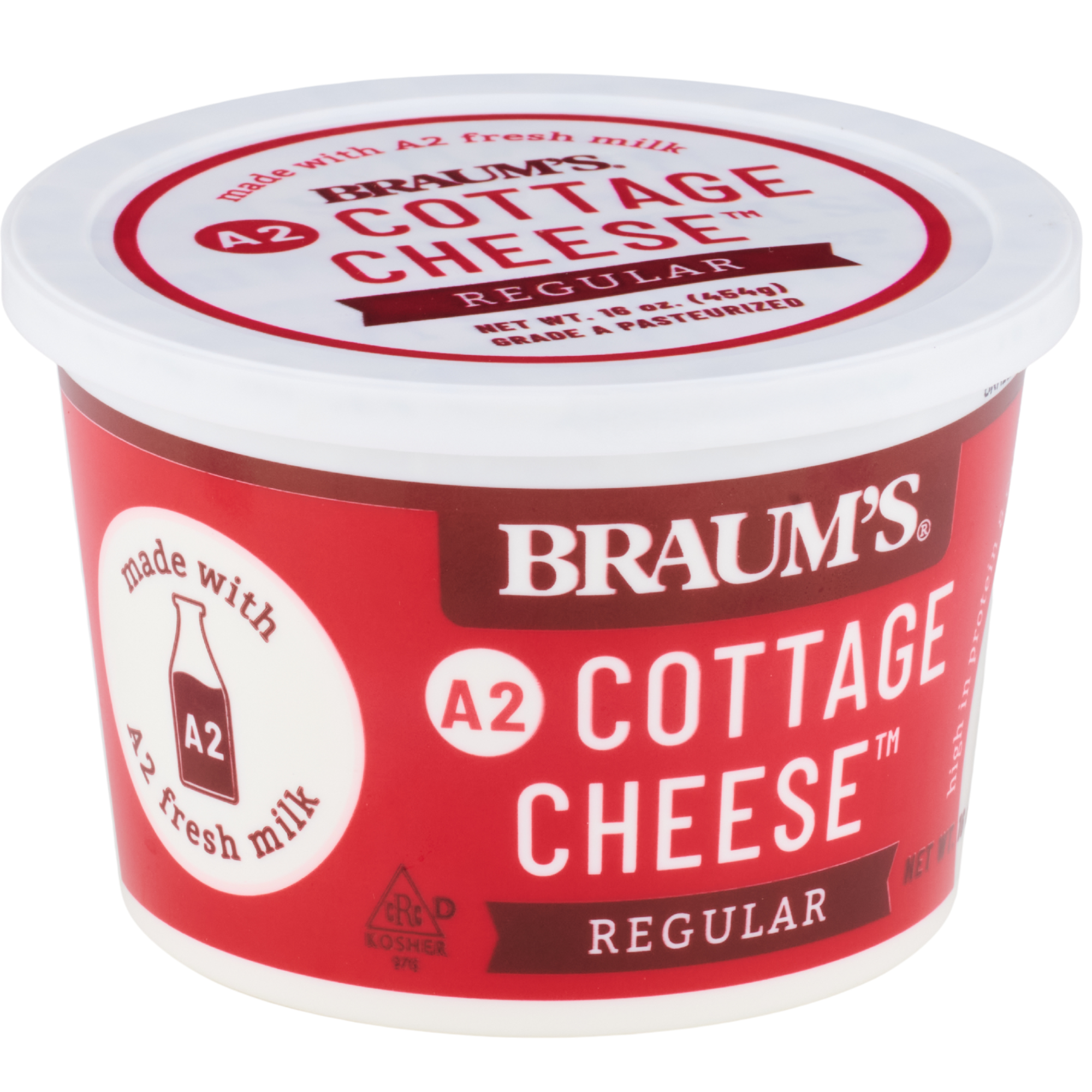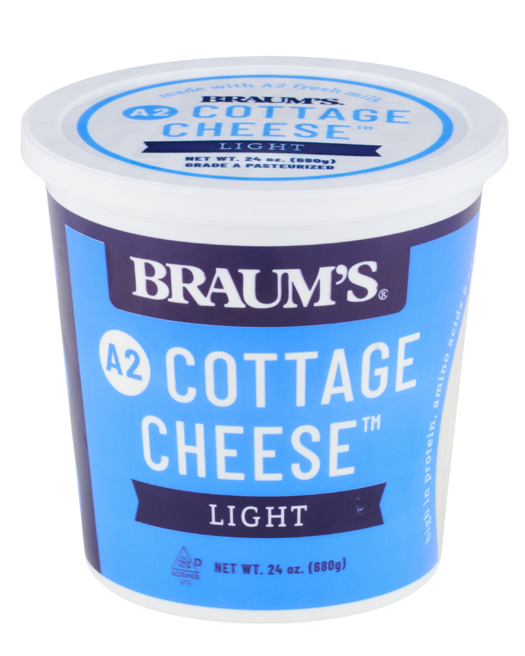 Braum’s A2 Low Fat Small Curd Cottage Cheese has 60 percent less fat than our Regular Cottage Cheese but has the same fresh, wholesome taste! Braum’s Cottage Cheese, made with Braum’s A2 Fresh milk, fresh from the family farm, comes in Low Fat and Regular and is available 24 oz. (Nutritional Facts Below for Light Cottage Cheese.)