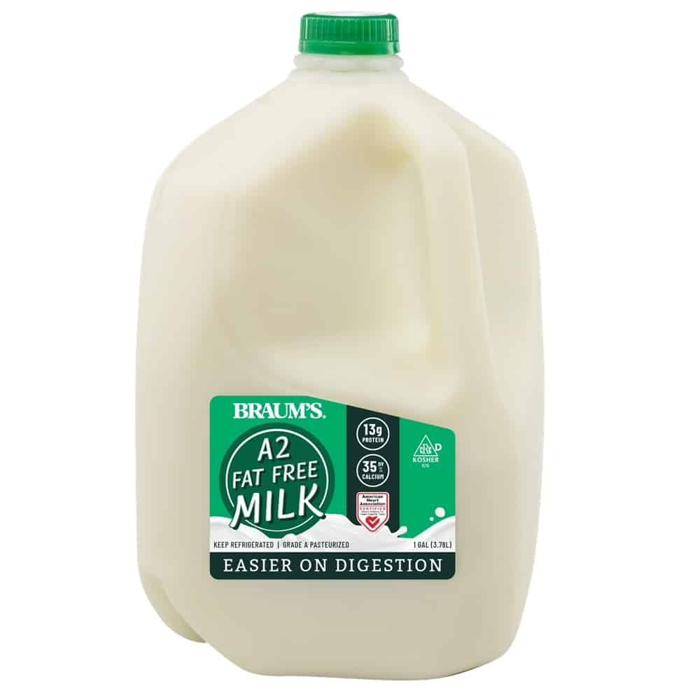 Braum’s A2 Fat-Free Milk is unique. It has up to 50 percent more natural calcium, protein and other essential nutrients than any other milk on the market. That’s because we send the milk through our special and exclusive vacuum processing system which actually removes 1/3 of the water from the milk thus concentrating the milk. That’s why Braum’s Fat-Free Milk is better for you, is richer and creamier and tastes more like whole milk!