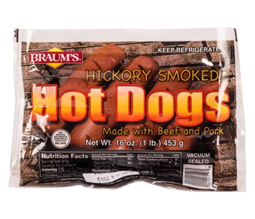 Braum’s Hot Dogs are hickory smoked over real hardwood hickory! Try one today on a fresh hot dog bun baked fresh in our bakery!
