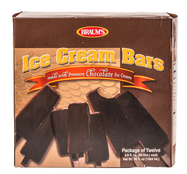 Calling chocoholics everywhere! Braum’s Chocolate Bars are the perfect balance of Premium Chocolate Ice Cream covered in a thick, crunchy layer of chocolate. There are 12 bars in a box, so there is plenty of chocolate ice cream bar goodness to go around.