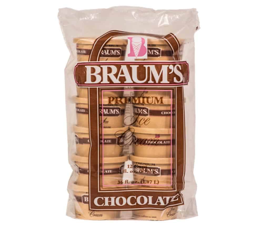 Now you can enjoy the delicious taste of Braum’s Premium Chocolate Ice Cream in convenient 3 oz. cups. All you need is a spoon and you can dig into your favorite frozen dessert any time. Great for kids of all ages! Braum’s Ice Cream Cups are available in Vanilla and Strawberry, too! (12 cups per bag)