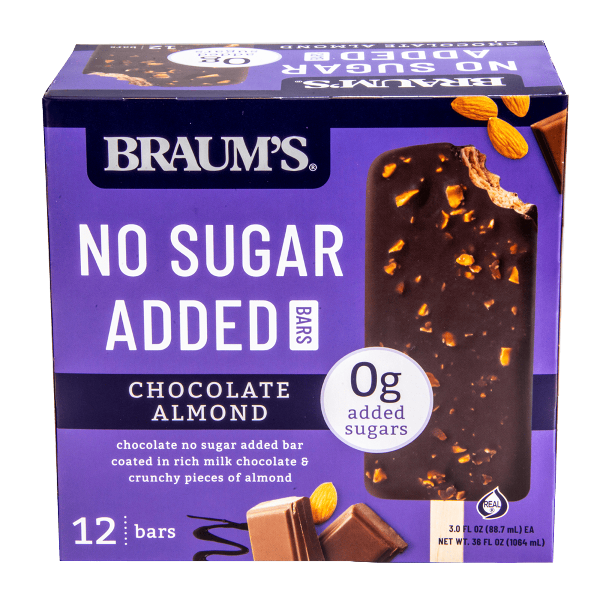 Braum’s No Sugar Added Frozen Chocolate Almond Bars take guilt-free indulgence to a new level. If you love our chocolate almond frozen yogurt, these will be a homerun to your taste buds.