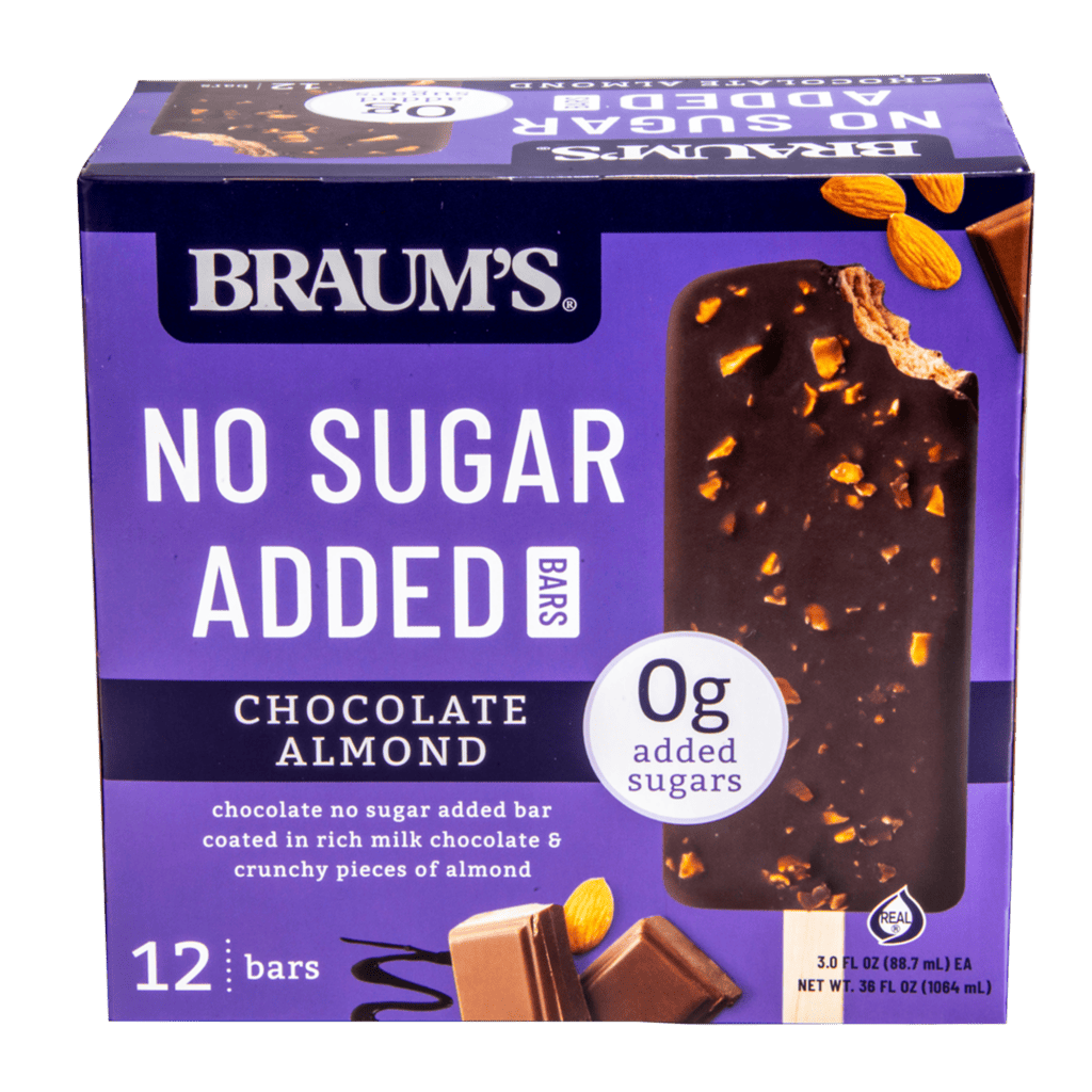 Braum’s No Sugar Added Frozen Chocolate Almond Bars take guilt-free indulgence to a new level. If you love our chocolate almond frozen yogurt, these will be a homerun to your taste buds.