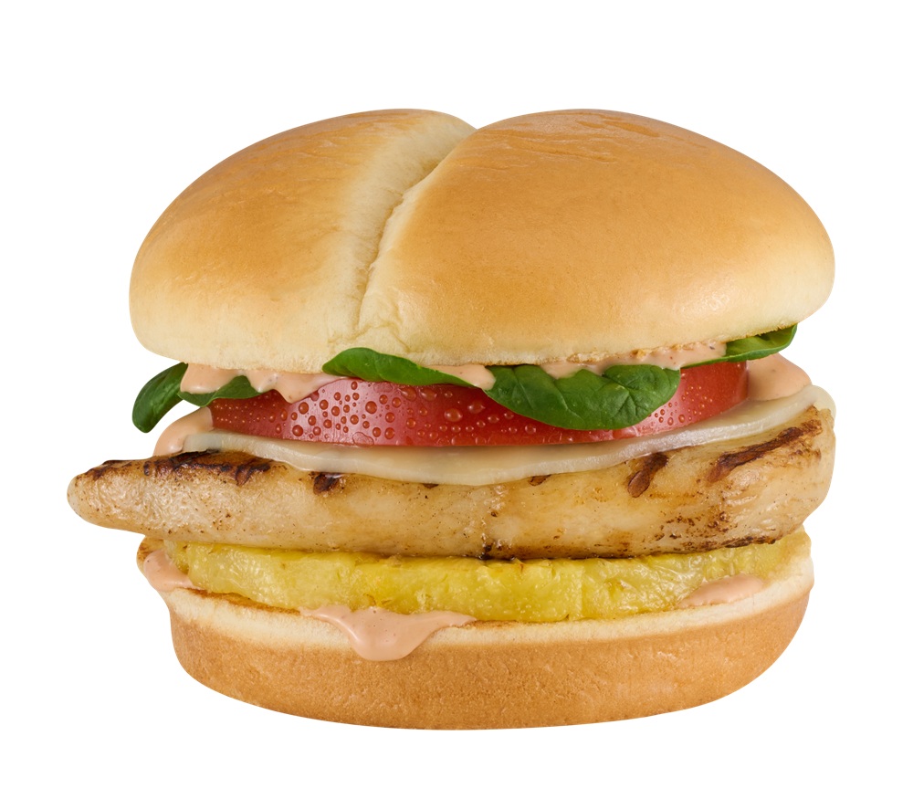 Say “Aloha” to Braum’s New Tropical Sensation, The Aloha Chicken Sandwich. It is the perfect combination of sweet & tangy. We start with a sweet Hawaiian bun topped with a grilled chicken patty. We then add a fresh, grilled pineapple ring, smoked Provolone cheese, a bed of spinach, sliced tomato, and a wave of Braum’s tangy dipping sauce. Also available with crispy or spicy chicken.