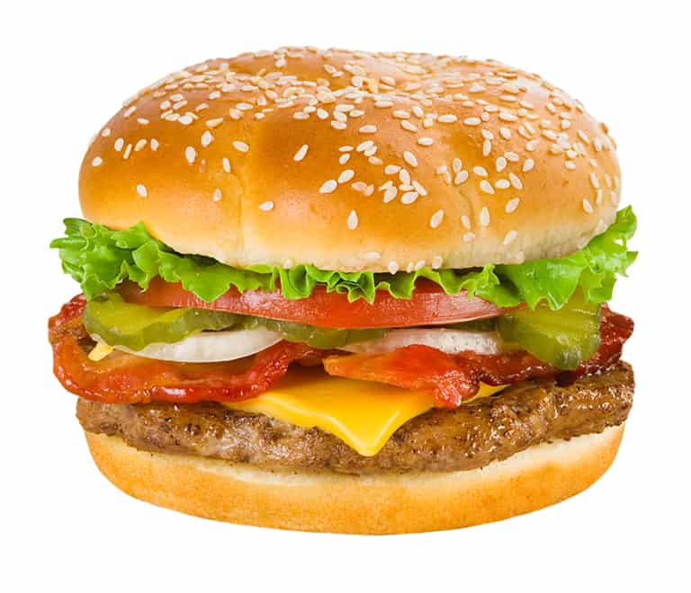 Braum’s Bacon Cheeseburger starts with a 100% pure beef patty. Then, we pile on hickory smoked bacon and cheese. We add fresh lettuce, tomato, pickle, onion, Braum’s sauce and mayo. It’s all served on a sesame seed bun freshly baked in Braum’s bakery!