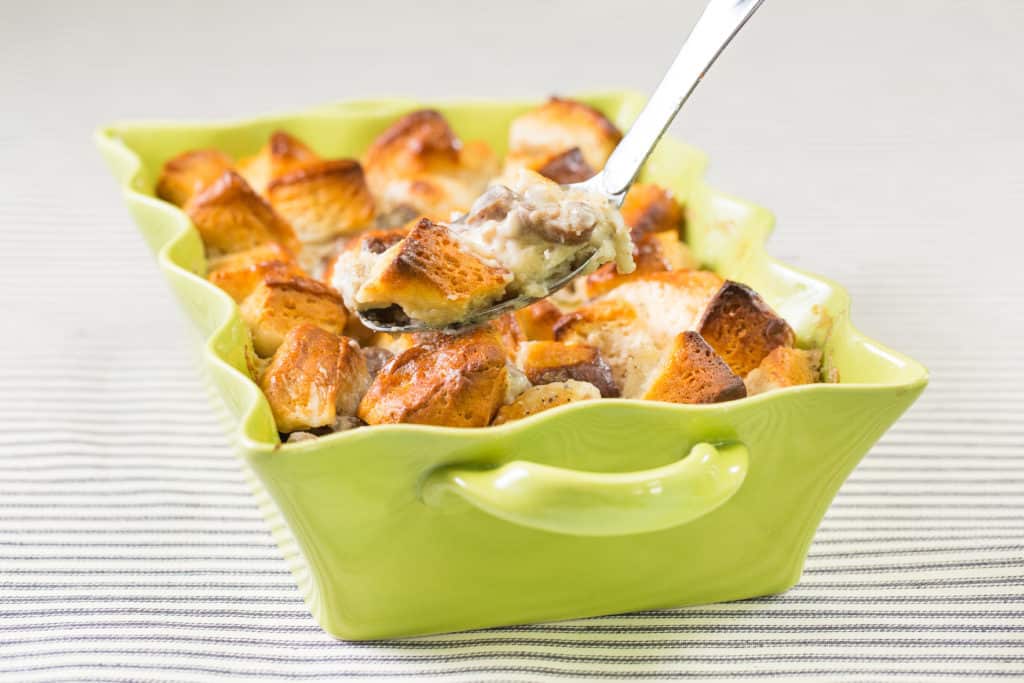 8. Place the rest of the biscuit pieces on top of the gravy and bake for an additional 15-20 minutes or until golden brown.