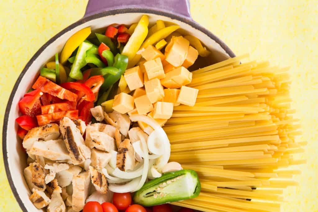 1. In a large stockpot over medium-high heat, add olive oil and sliced chicken.